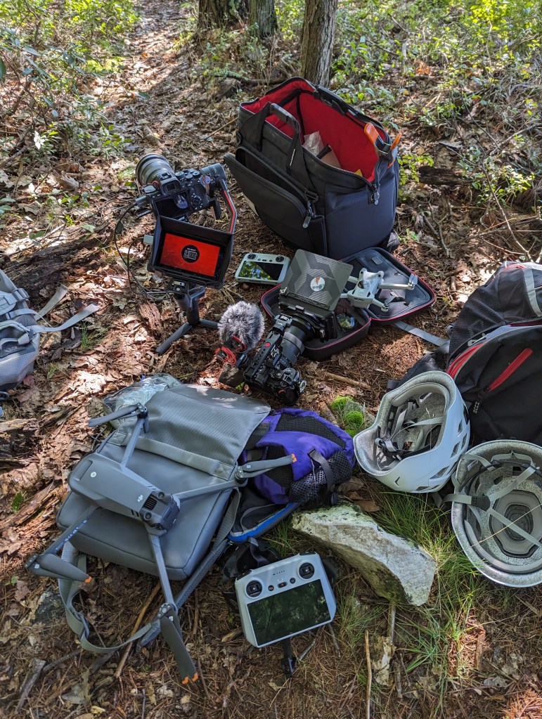 I filmed/photographed on a DJI Mavic 3 Pro and DJI Mini 3 Pro and it was great to have both drone options for different settings. It feels much safer to take the Mini off from the cliff and try and thread through trees (though I wish I had the new Mini 4 Pro for omni-directional obstacle avoidance) and it has a great vertical mode for portrait shots. The Mavic Pro on the other hand has three lenses for a little more variety and much better 4K slow motion capacity. We filmed the interviews and B-roll on two Sony a7Siii’s and I had a backup Sony FX30 which I never ended up taking out of the Pelican case but it’s always nice to know you have another option.